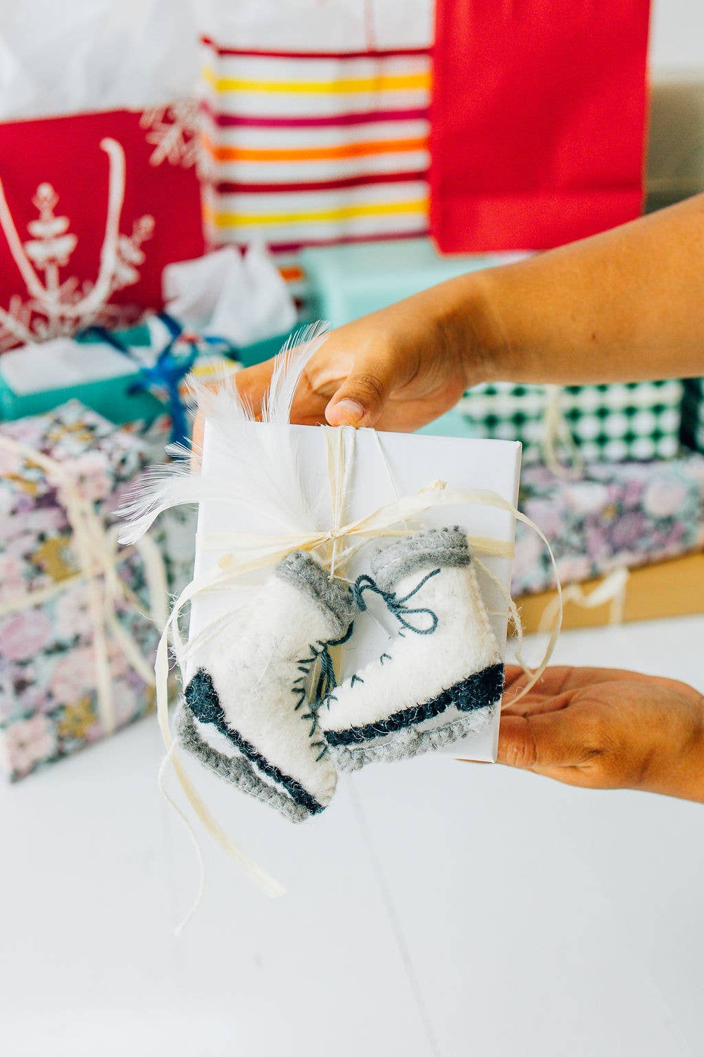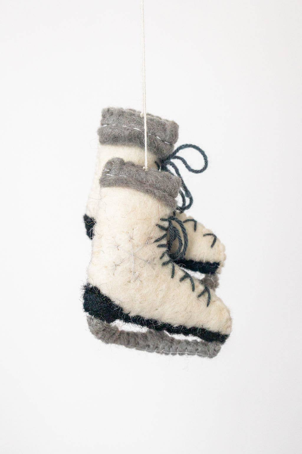 Winter sports ornament. Ice skating holiday decor. Figure skating ornament. Skating holiday ornament. Winter activity ornament. Cozy winter ornament. Vintage ice skate ornament. Fair Trade ornament. Ice rink ornament. Winter wonderland decoration. Home Decor. Felt Skates. Kid's Ornament.