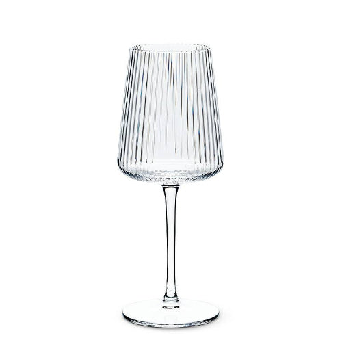 Impress your dinner guests with this luxurious Wine Glass. Made from optic glass with elegant line patterns, this exquisite goblet is perfect for any social gathering. Hand wash only. Also comes in various styles.