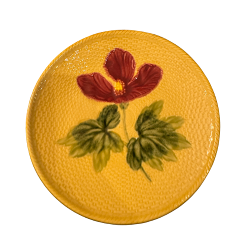 Vintage hand painted plate with red flower in center.